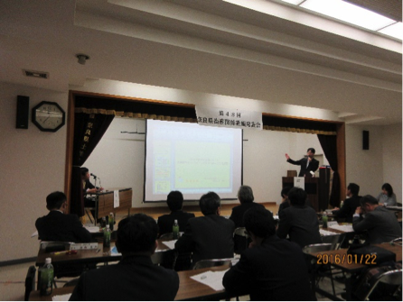 平成28年1月22日(金)、「第48回奈良県畜産関係業績発表会」が開催されました。来賓として(公社)奈良県獣医師会久保会長、助言者として(株)微生物化学研究所の網本部長をはじめとして、奈良県獣医師会、奈良県農業共済組合連合会家畜診療所、奈良県畜産会、奈良県畜産農業協同組合連合会、奈良県獣医師会、県農林関係部署等々の多くの方々をお招きしました。出席者は約30名でした。